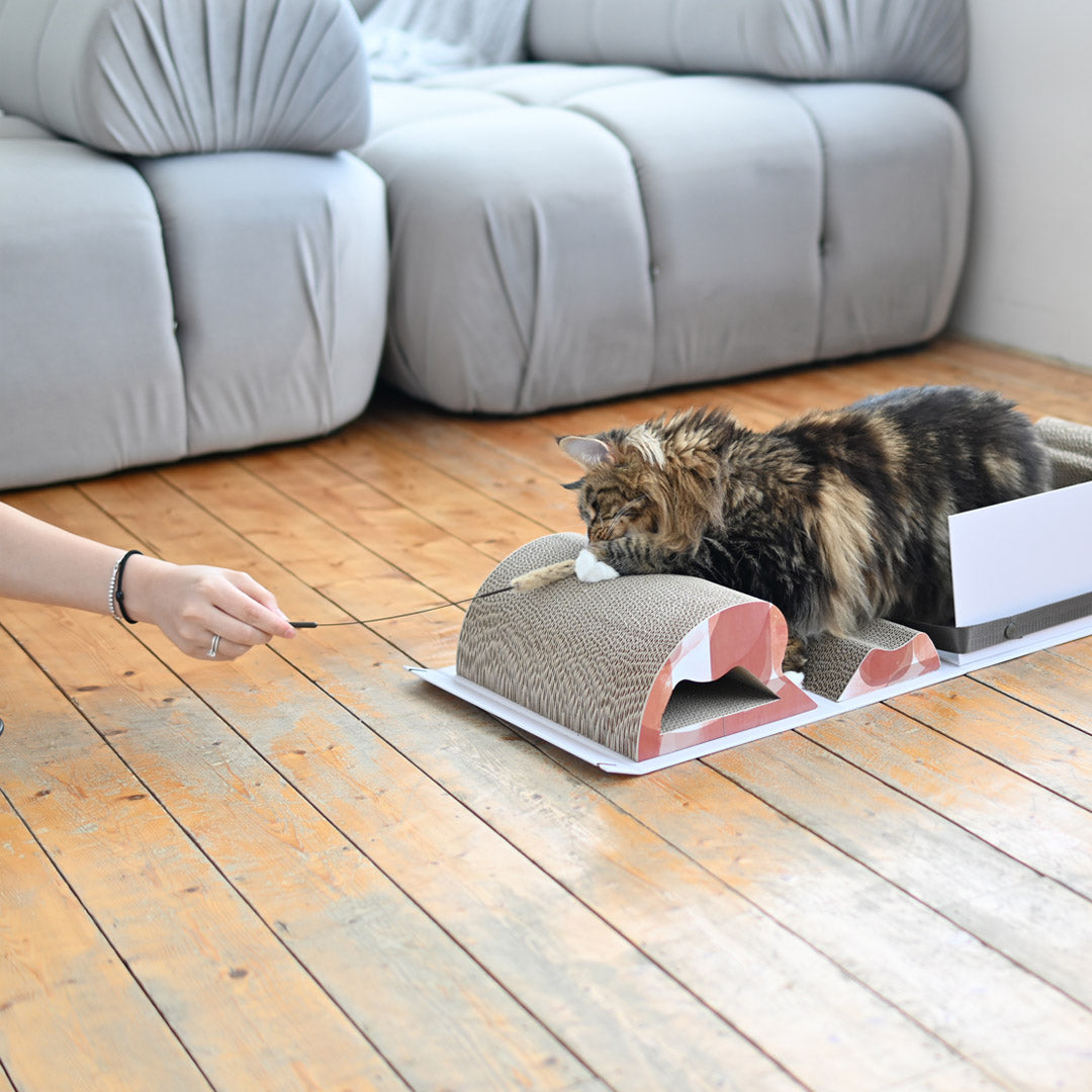 Each side of the scratching board is designed with your cat's posture in mind, allowing them to lie, pounce, jump, scratch, and play. Every Mystery Box will reveal a combination that your cat will love!